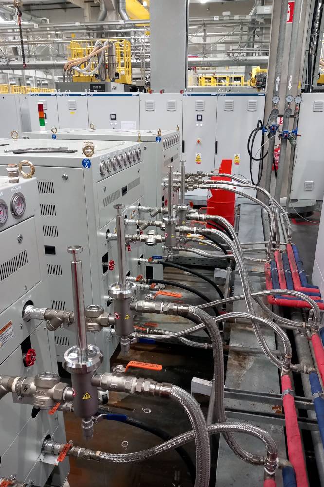 Der Kunde betreibt eine Temperieranlage von Spritzgießmaschinen zum Vorwärmen von Spritzgussformen durch Zirkulation von modifiziertem Wasser. Beim Formenwechsel gelangen Rostpartikel in das System und können die Temperieranlage verstopfen und/oder beschädigen.
