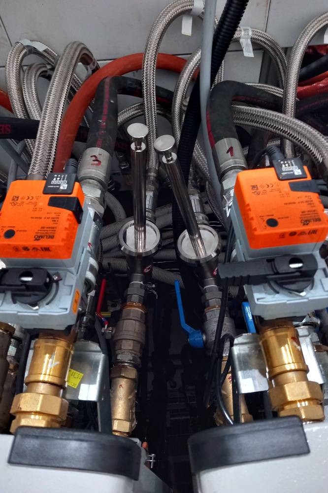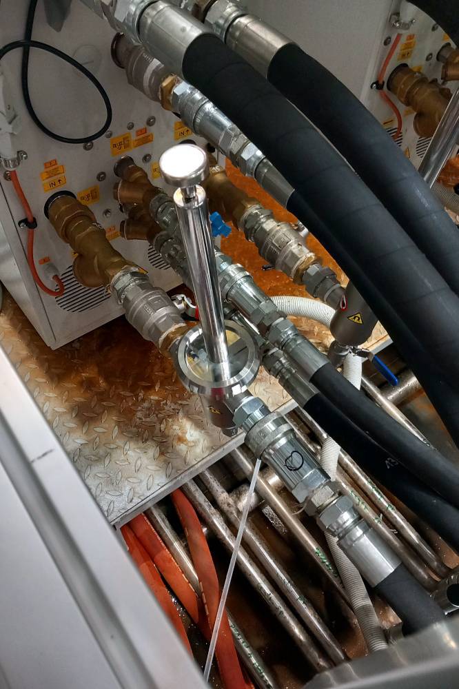 Wir schlugen die Installation des Magnetfilters MSP-MC EKO 1“ N SEA SNAKE (150 °C) im Temperierkreislauf vor und führten diese durch. Dieser Magnetfilter fängt feine Eisenpartikel effektiv ein und verhindert, dass sie sich im System absetzen. Dank seiner kompakten Größe und seines geringen Gewichts konnte der Abscheider problemlos in die bestehende Produktionslinie integriert werden.