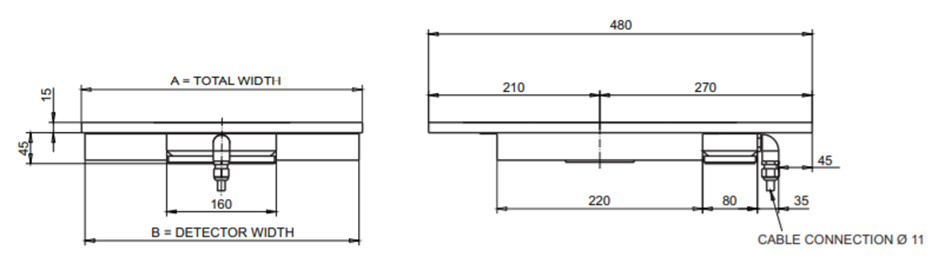 | B: Detektorbreite (mm) | Detektionsbereich (mm) | Gewicht (kg) |