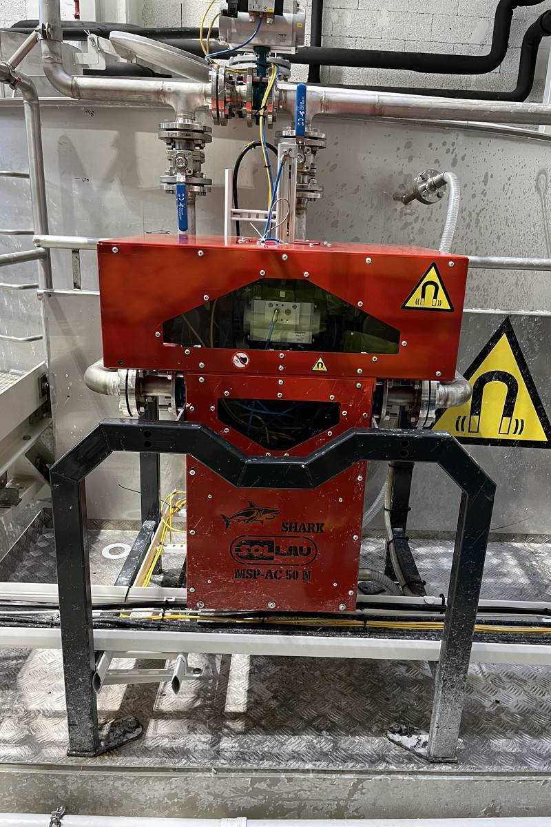 Selbstreinigender Magnetabscheider MSP-AC SHARK dient zur automatischen Trennung von sehr kleinen ferromagnetischen Verunreinigungen (ab 1 Mikron) aus flüssigen Materialien. Dank seines hochentwickelten Durchflusslabyrinths und seines automatisierten Reinigungssystems ist dieser Magnetfilter ein Spitzenprodukt (in Bezug auf die Effektivität der magnetischen Separation, sowie des Reinigungskomforts) unter den magnetischen Separatoren.
