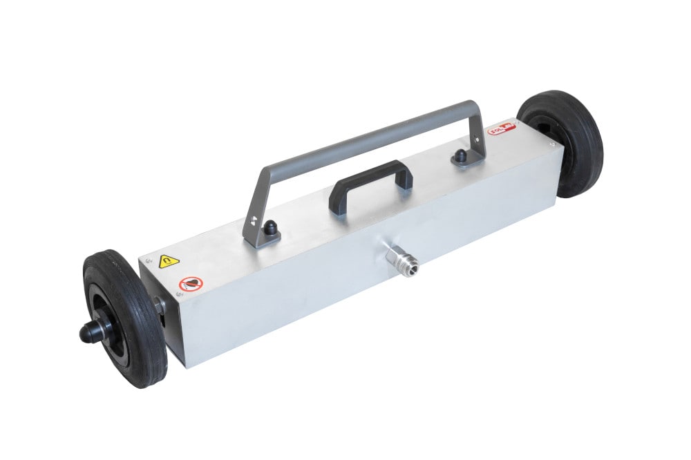 Der Magnetbesen MZ ist mit großen, höhenverstellbaren Seitenrädern ausgestattet, sodass er sowohl im Innen- als auch im Außenbereich einsetzbar ist. Sein Vorteil ist die einfach zu benutzende Freigabefunktion direkt am Griff des Magnetbesens. Ziehen Sie einfach den Hebel am Griff des Magnetbesens – der Besen wird entmagnetisiert und die aufgefangenen Metalle fallen ab.