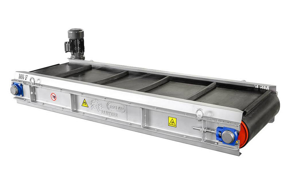 Die Hauptvorteile von Ferrit-Überbandmagneten sind ihre Hitzebeständigkeit, magnetische Stabilität, der niedrigere Preis und bei starken Varianten ihr tiefes und sehr starkes Magnetfeld. Dieser Magnetabscheider ist so konzipiert, dass er quer über dem Förderband installiert wird.
