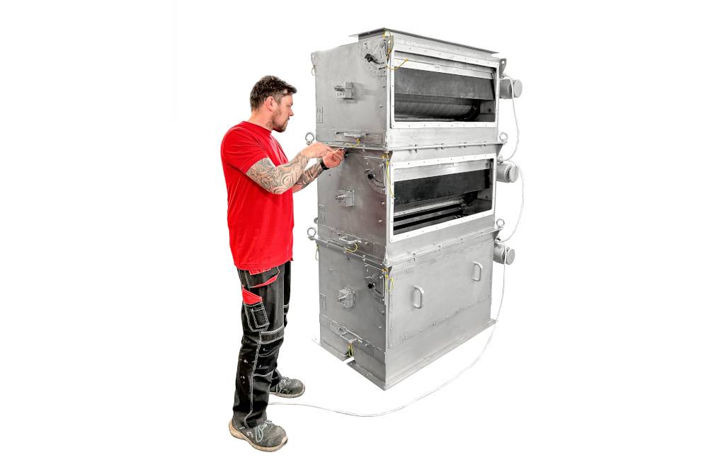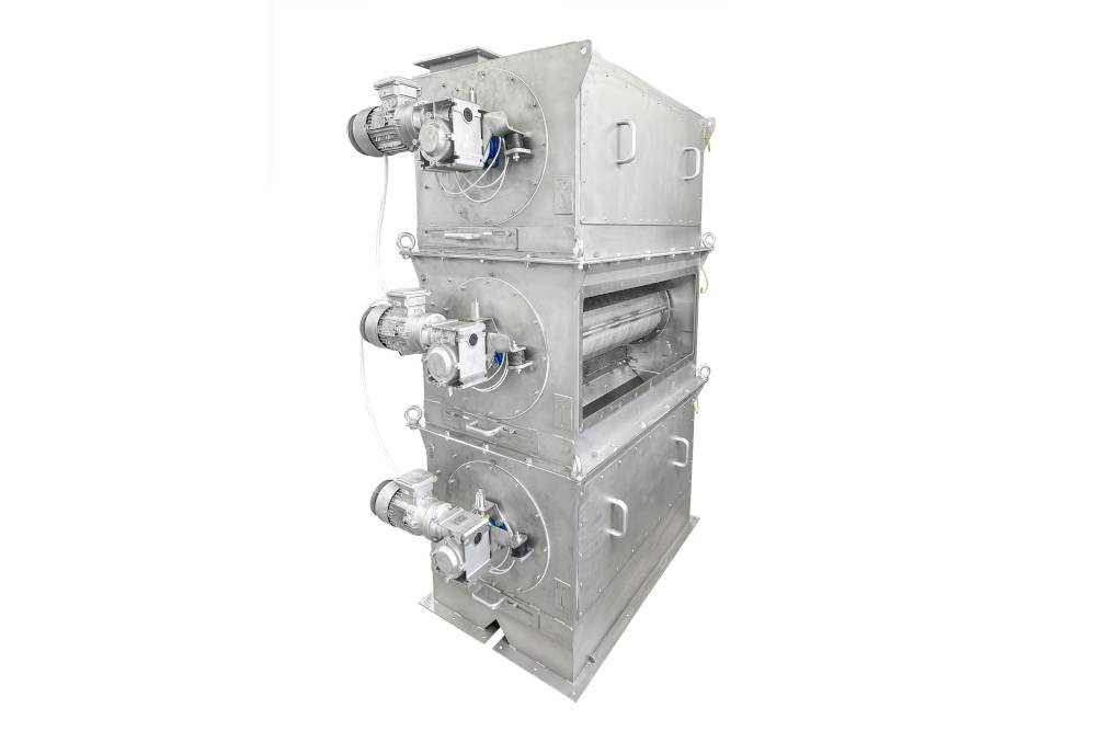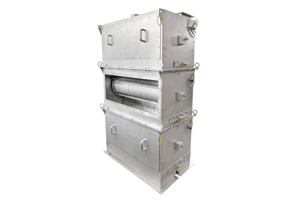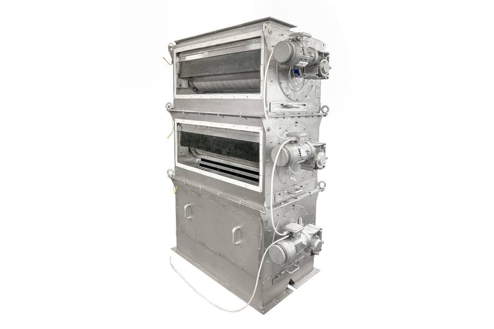 Multitrommel-Magnetabscheider ist für automatische und dauerhafte Abscheidung von ferromagnetischen Verunreinigungen aus Schüttgütern bestimmt. Das Magnetsystem, bestehend aus mehreren Trommeln, vereinfacht und beschleunigt die Erfassung von unerwünschten ferromagnetischen Verunreinigungen, sorgt für automatische Abscheidung dieser Stoffe ohne Unterbrechung des Produktionsprozesses und für das Erreichen der bestmöglichen Reinheit des Produktes.